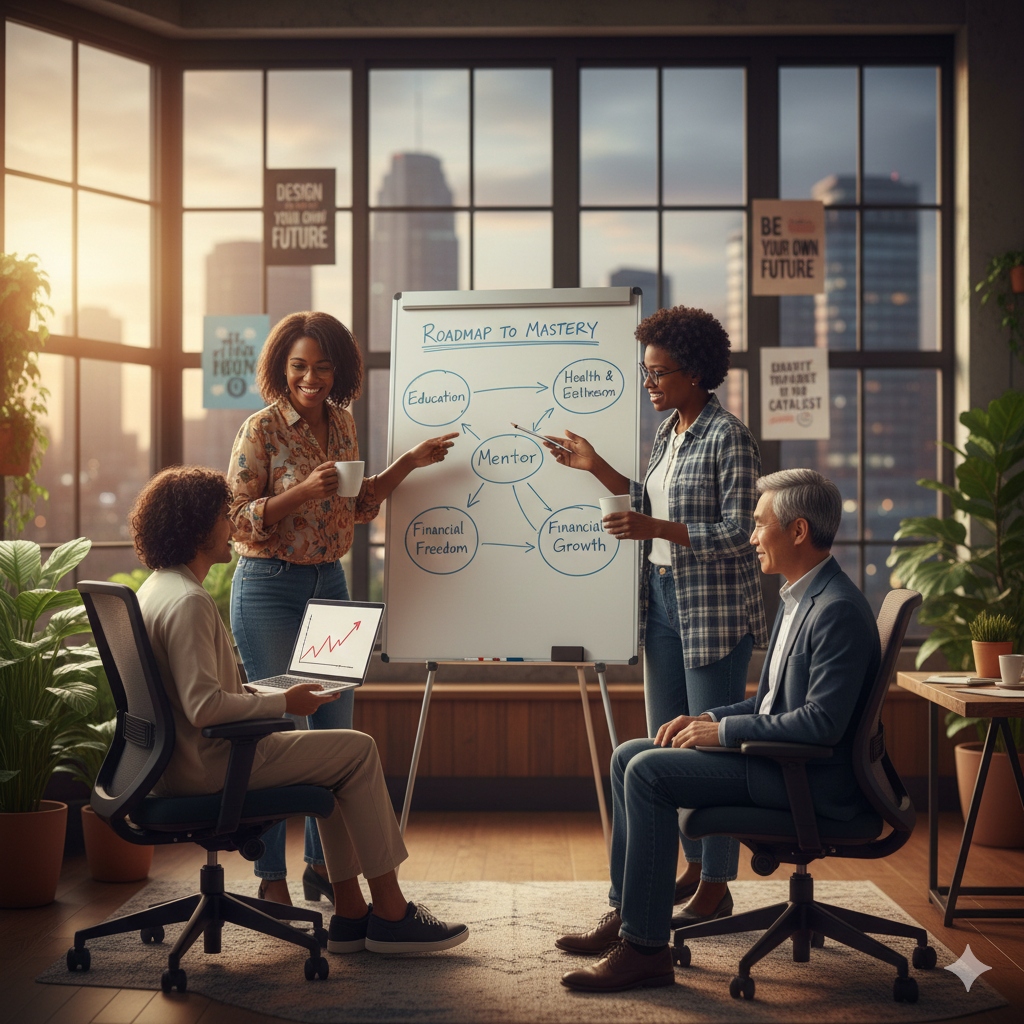 Unlock Your Potential. Design Your Future. A holistic platform empowering you through tuition-free education, expert wellness coaching, and strategic financial mentorship.